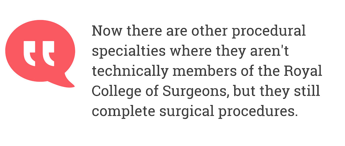 Now there are other procedural specialties where they aren't technically members of the Royal College of Surgeons, but they still complete surgical procedures.