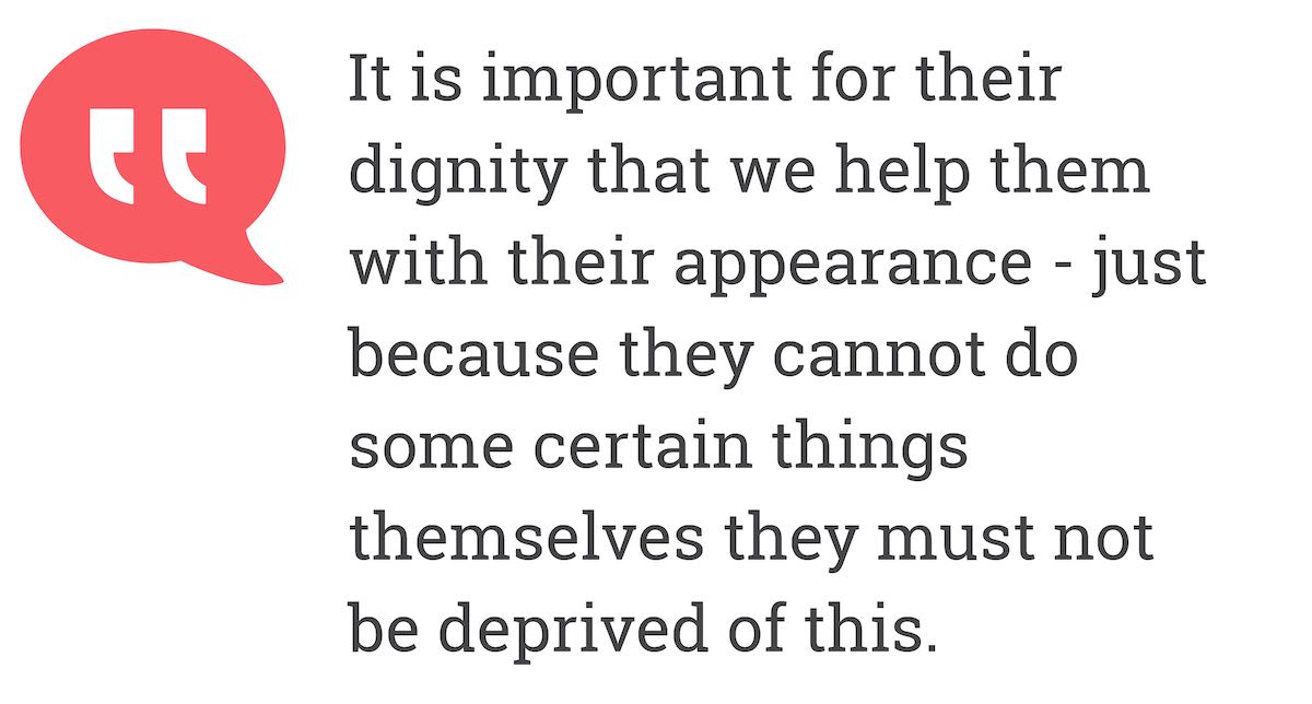 It is important for their dignity that we help them with their appearance - just because they cannot do some certain things themselves they must not be deprived of this.