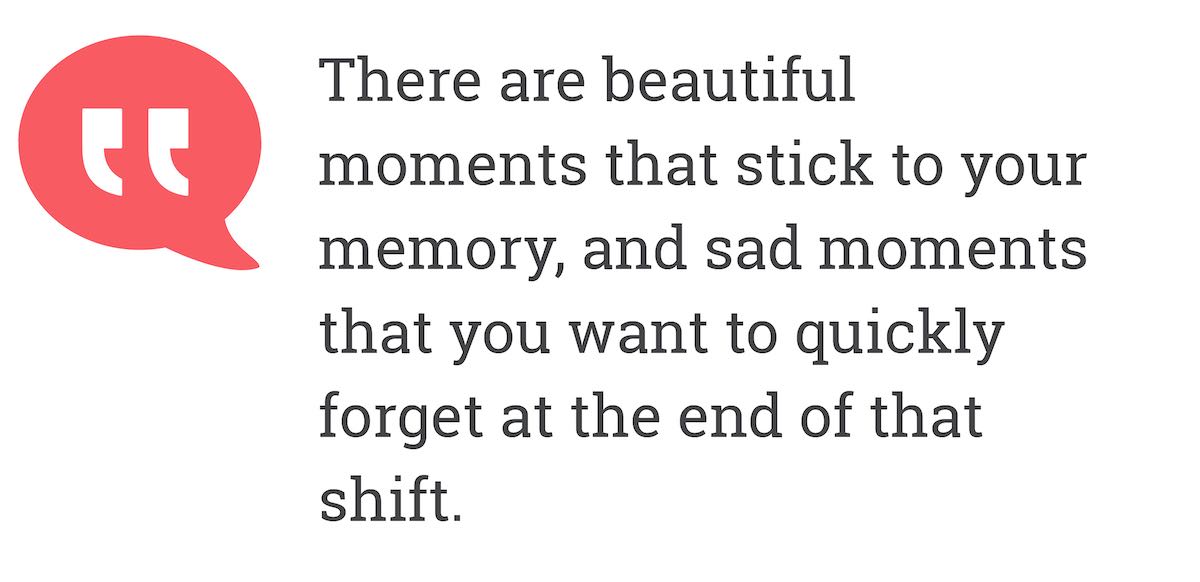 There are beautiful moments that stick to your memory, and sad moments that you want to quickly forget at the end of that shift.