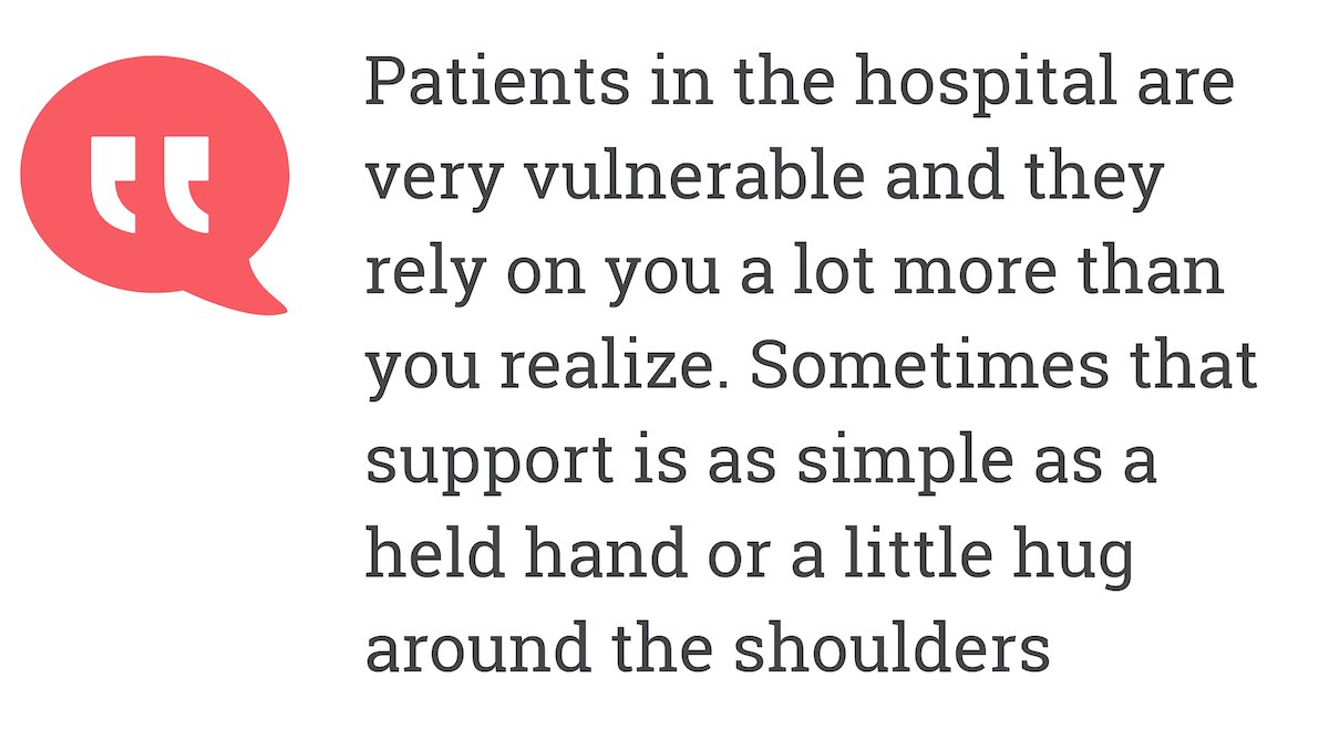 Patients in the hospital are very vulnerable and they rely on you a lot more than you realize.
