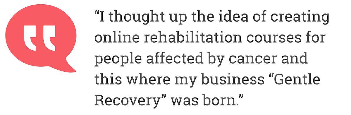 I thought up the idea of creating online rehabilitation courses for people affected by cancer and this where my business “Gentle Recovery” was born.