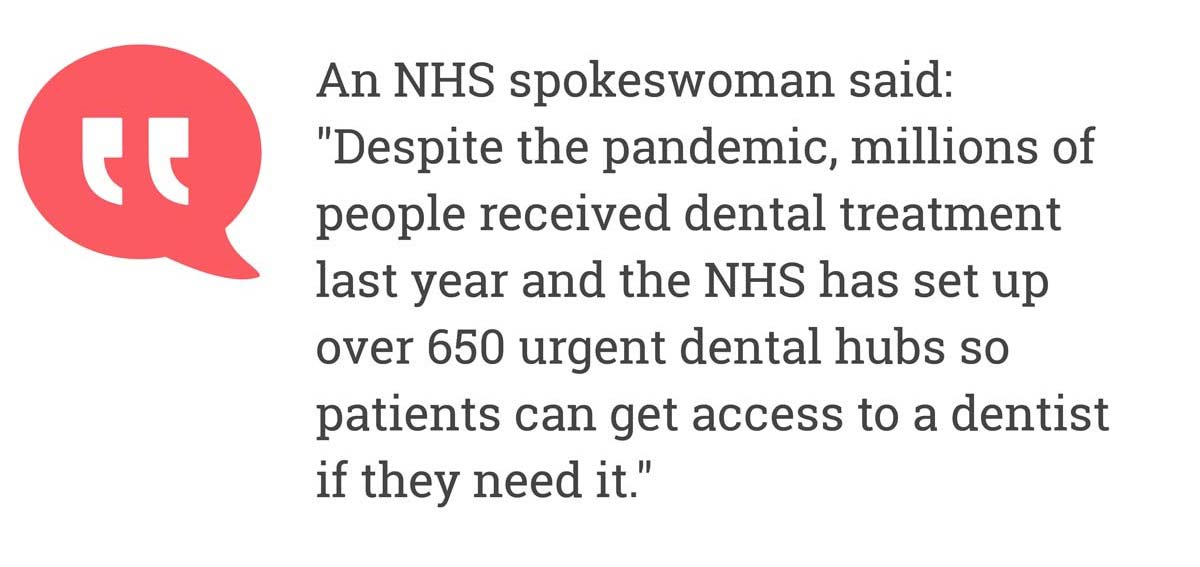 "In the longer term, the Department of Health and Social Care must prioritise the importance of oral health and commit to improving access to dentistry for everyone who needs it” he went on to add.