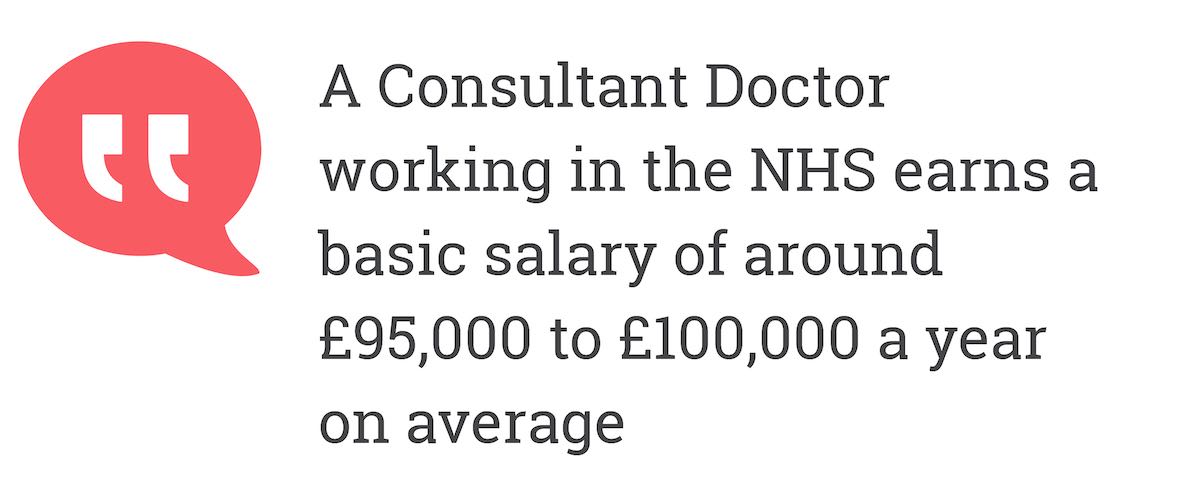 A Consultant Doctor working in the NHS earns a basic salary of around £95,000 to £100,000 a year on average.