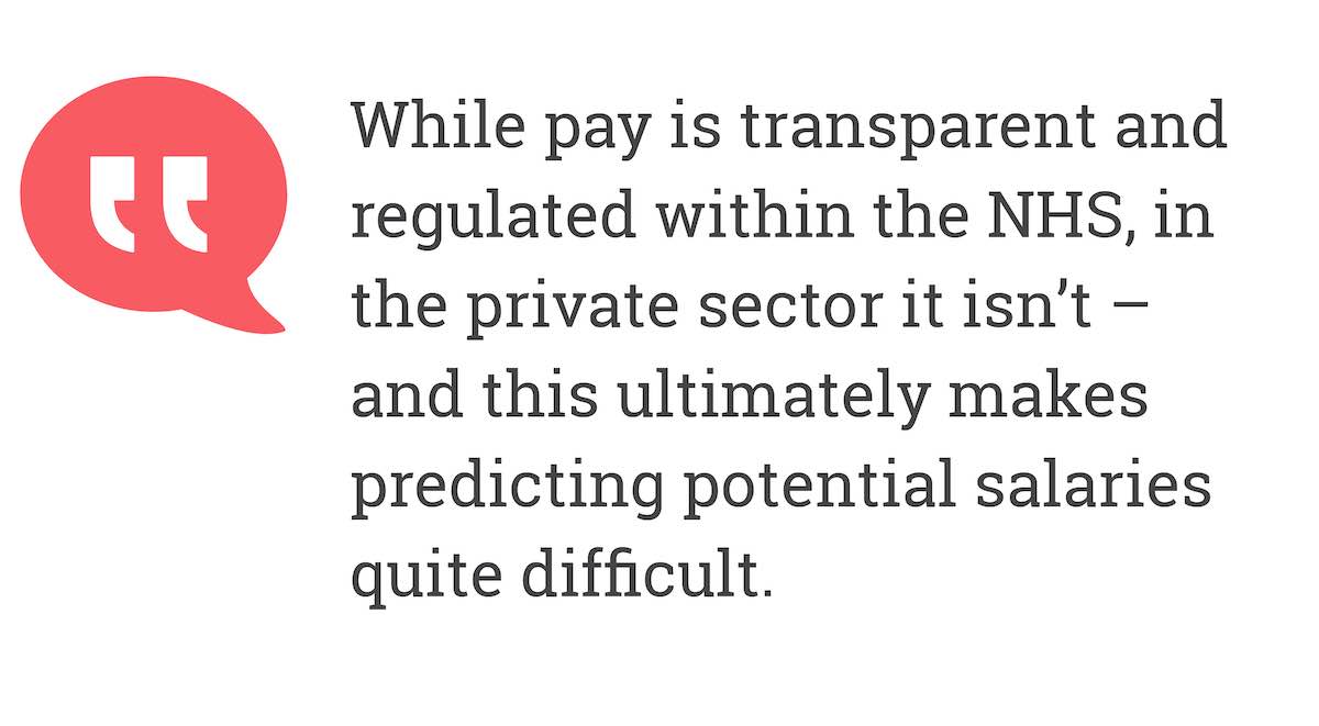 While pay is transparent and regulated within the NHS, in the private sector it isn’t – and this ultimately makes predicting potential salaries quite difficult.