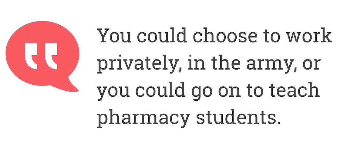 You could choose to work privately, in the army, or you could go on to teach pharmacy students.